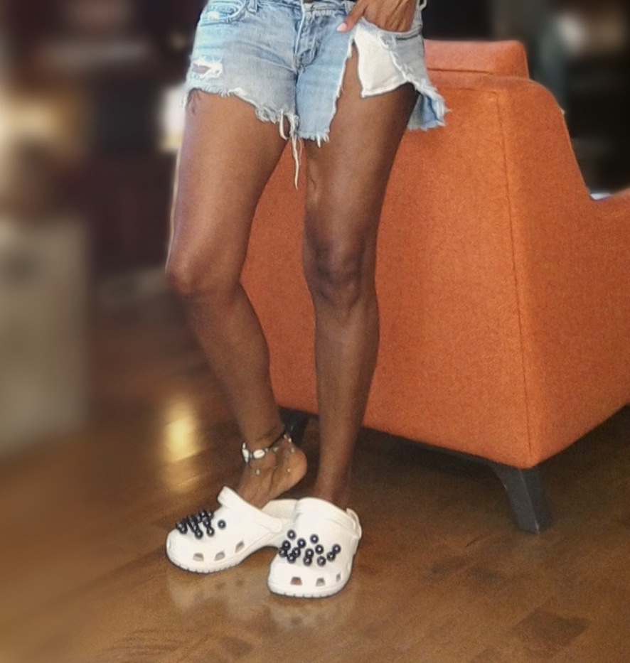 Happy day bellas. Taking a day to relax with the hubs. He’s trying to catch up on his Wall Street Journal reads and I’m sharing these super comfortable white Crocs with you.