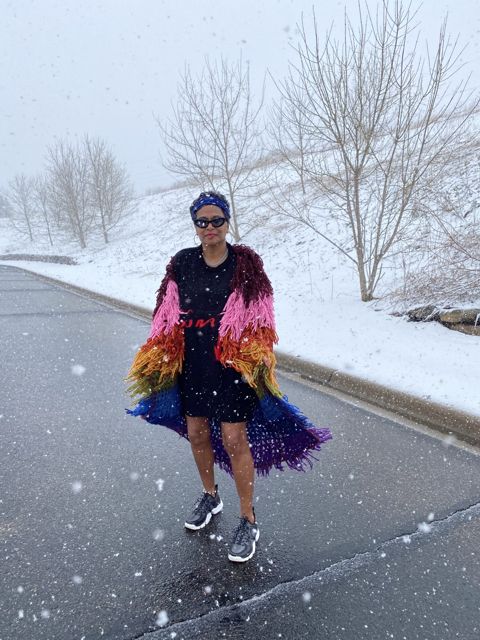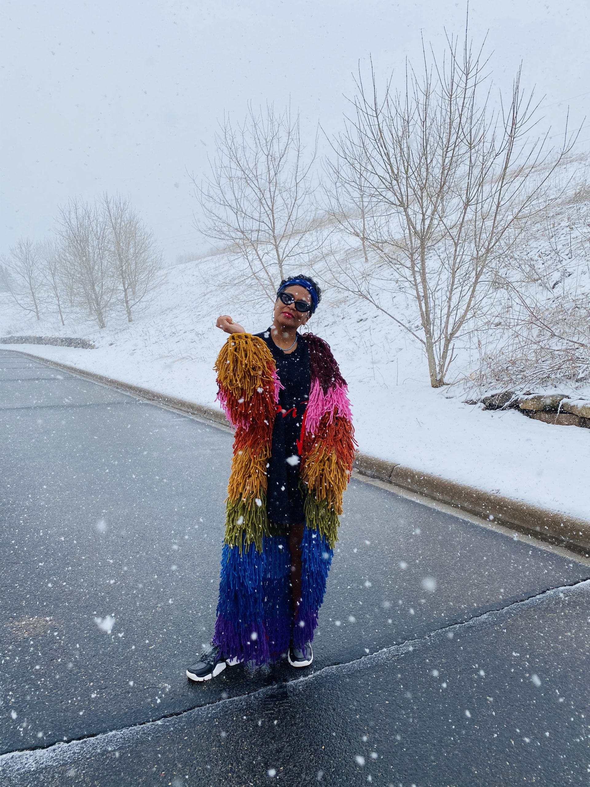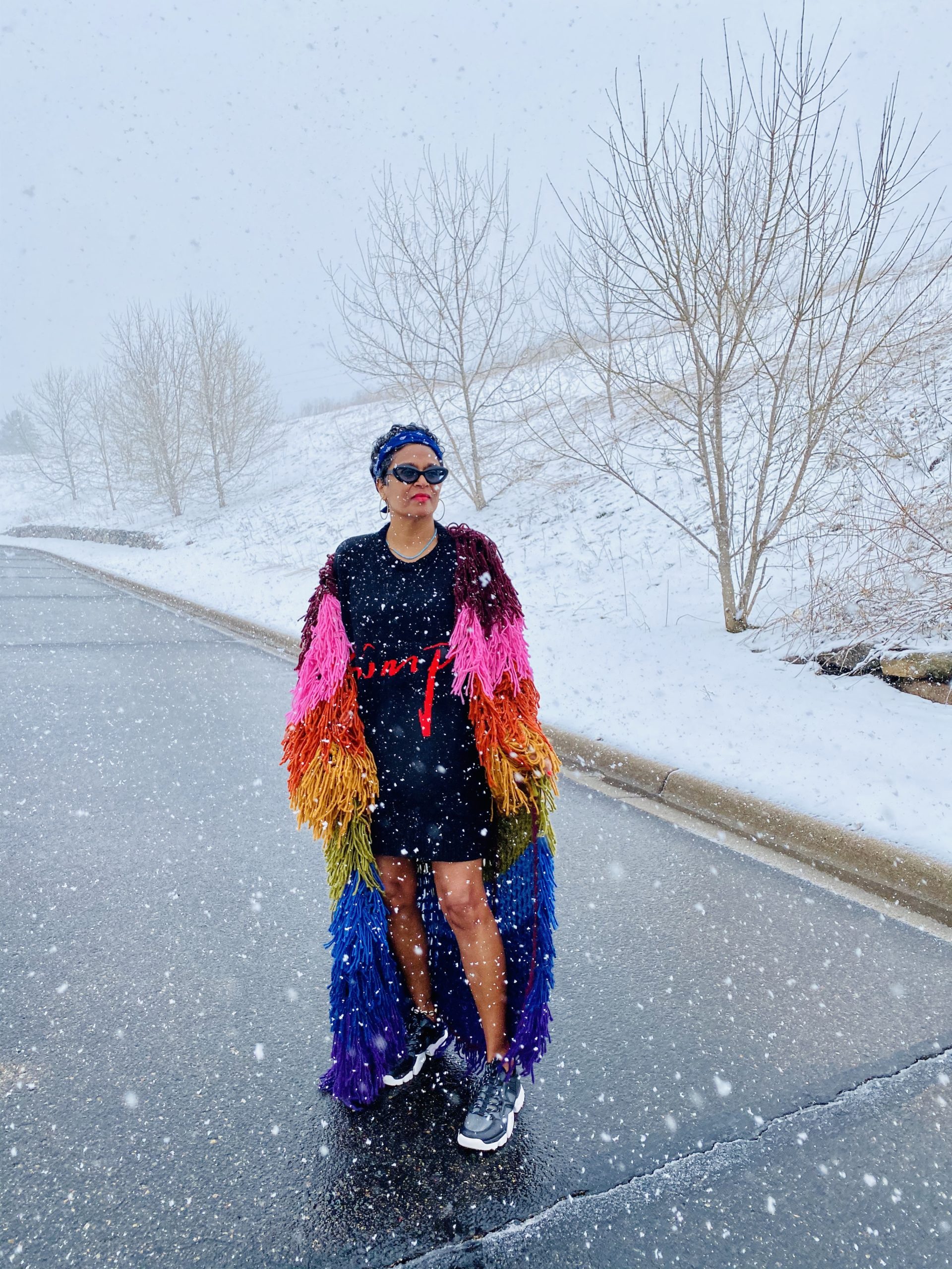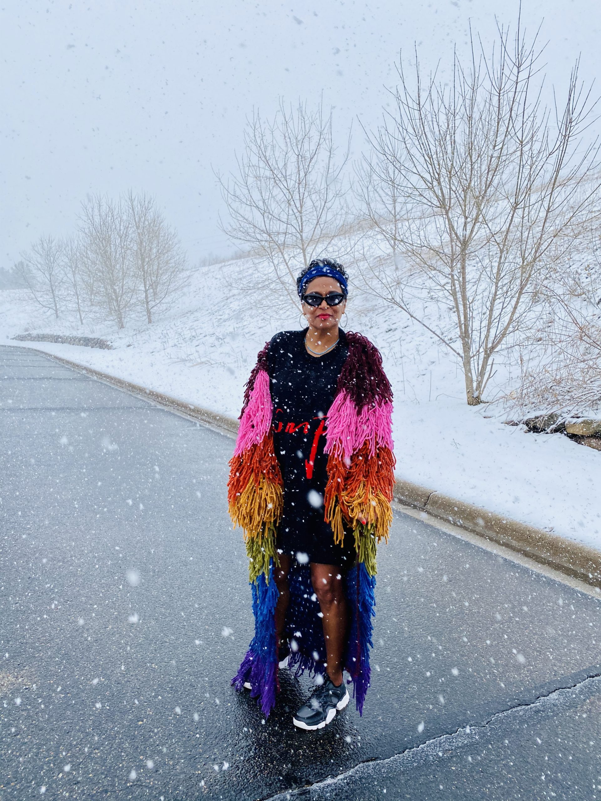 I’ve been wearing this shaggy cardigan the last few days. The bright colors are spectacular and it’s such a fun piece.