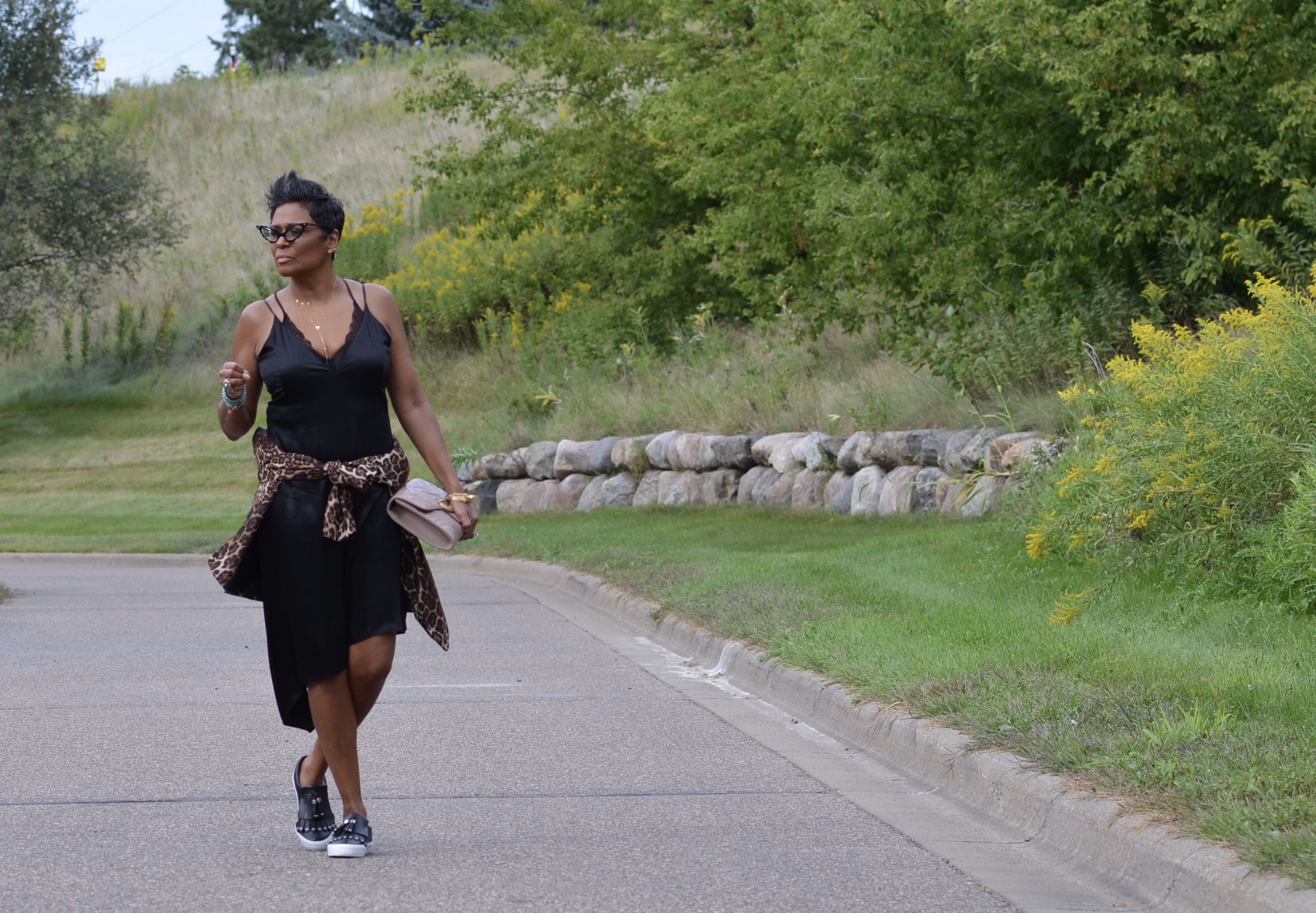 The evening was beautiful. But I’m always cold, so I decided to bring this leopard blazer with me. I tied it around my waist, because I’m a #coolnanawithaslightedge