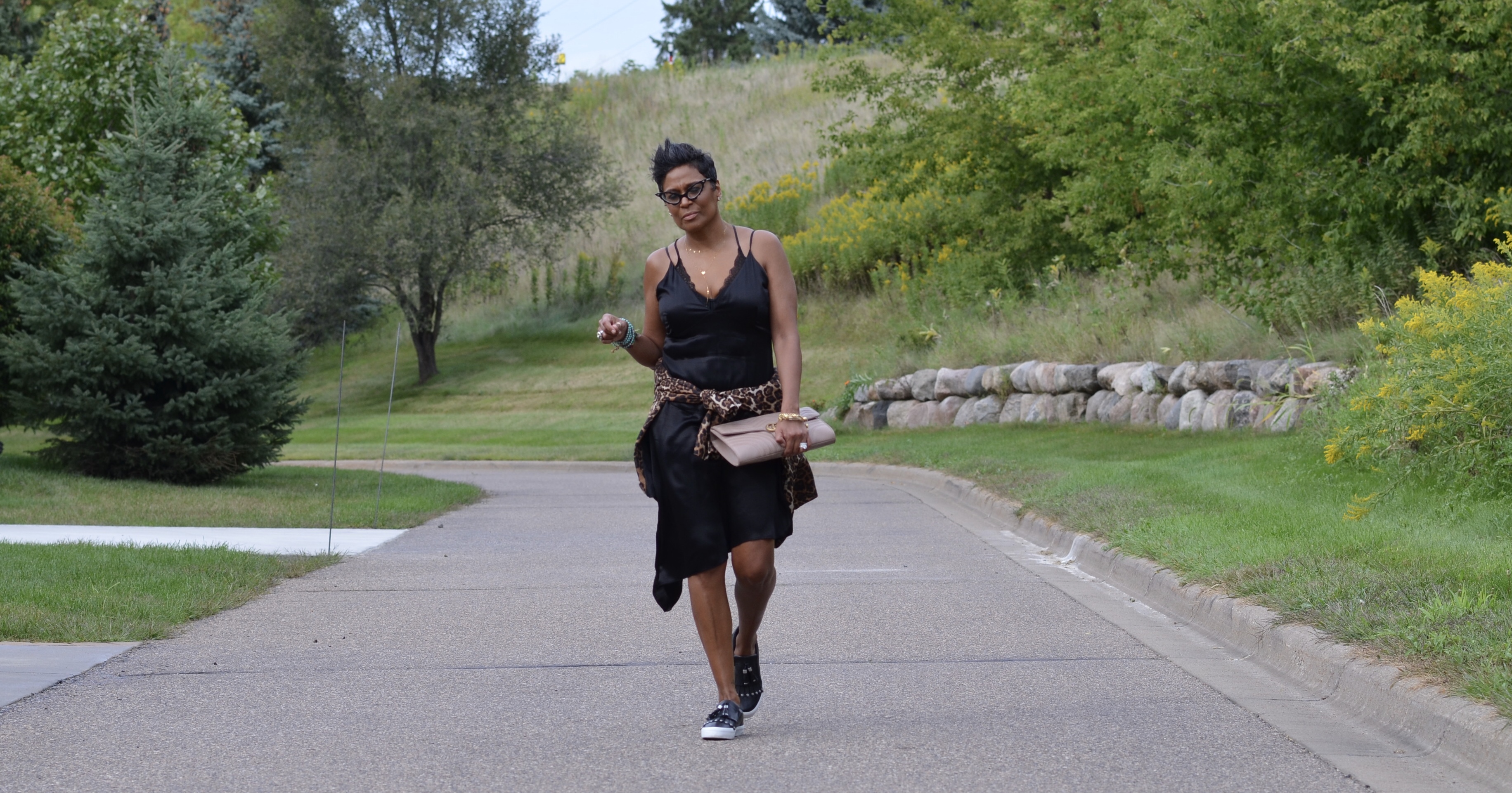 I love the comfort of this slip dress. Soft, silky, and looks fabulous with heels or a pair of comfortable sneakers. This is one trend, that I’m currently loving.