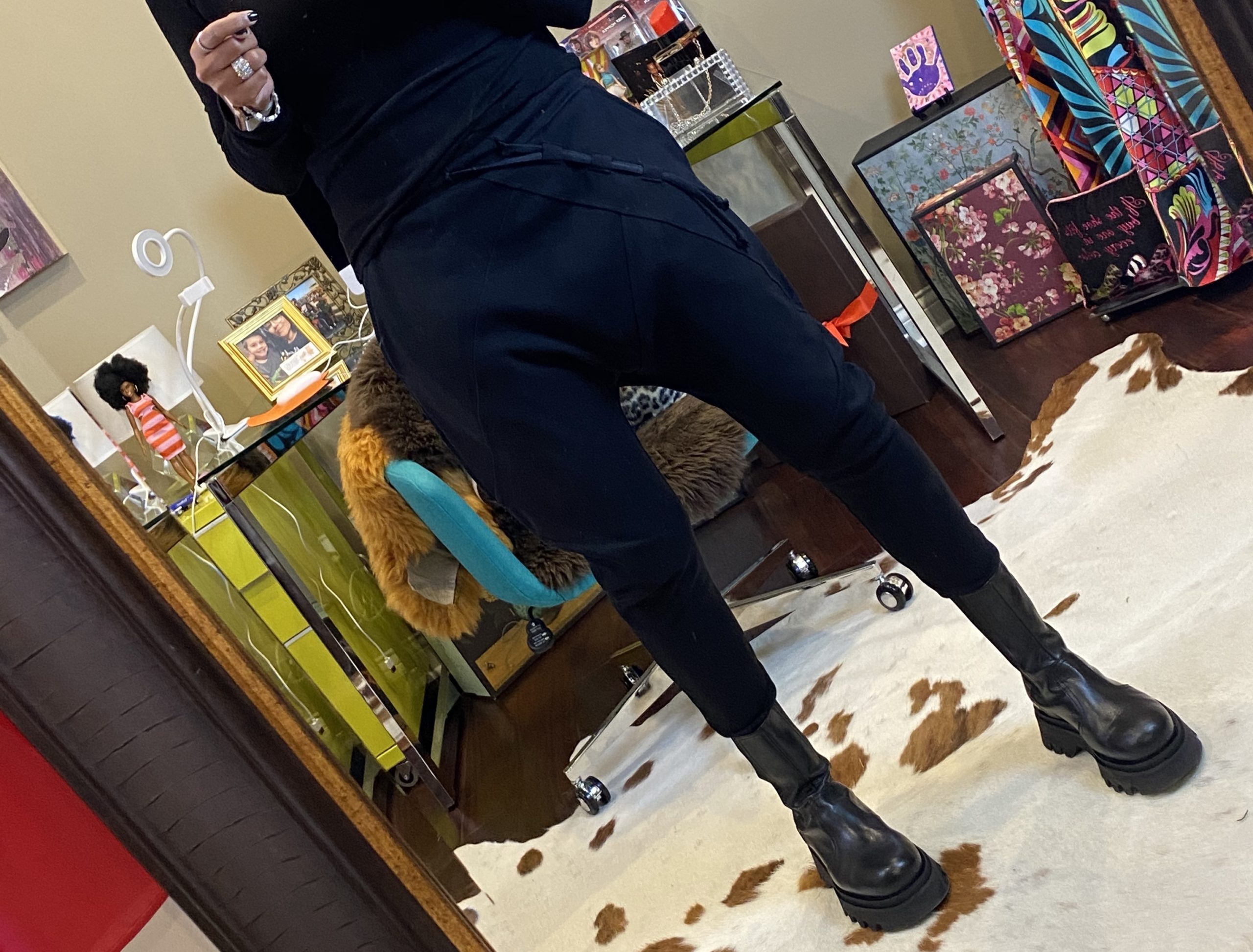 Another favorite were these drop crotch joggers. I kept trying to find them online, but by the time I saw them, they were already sold. Fortunately, when I went to the store I was able to find them in between a bunch of other style pants. It pays to dig bellas. 🙃
