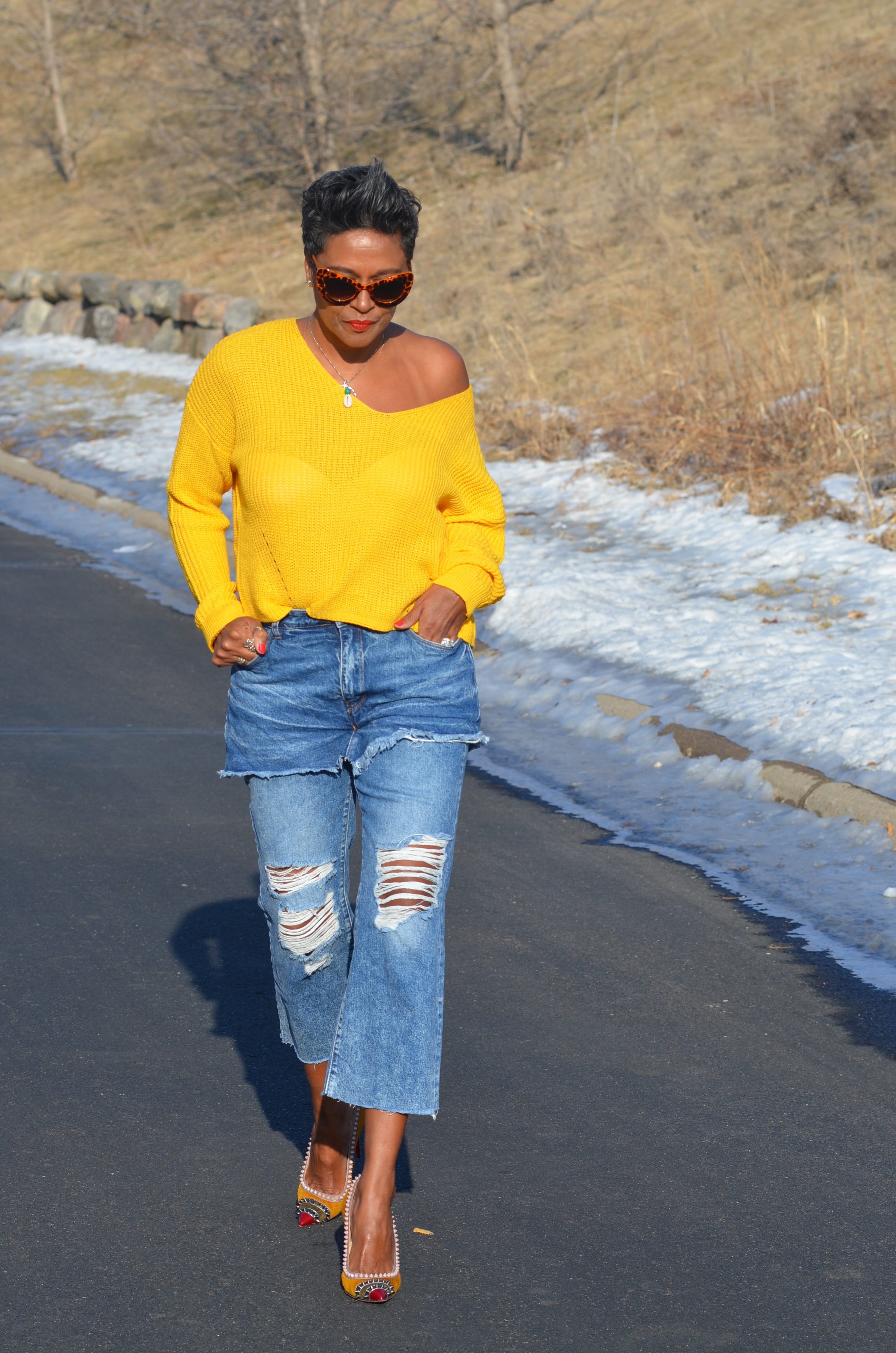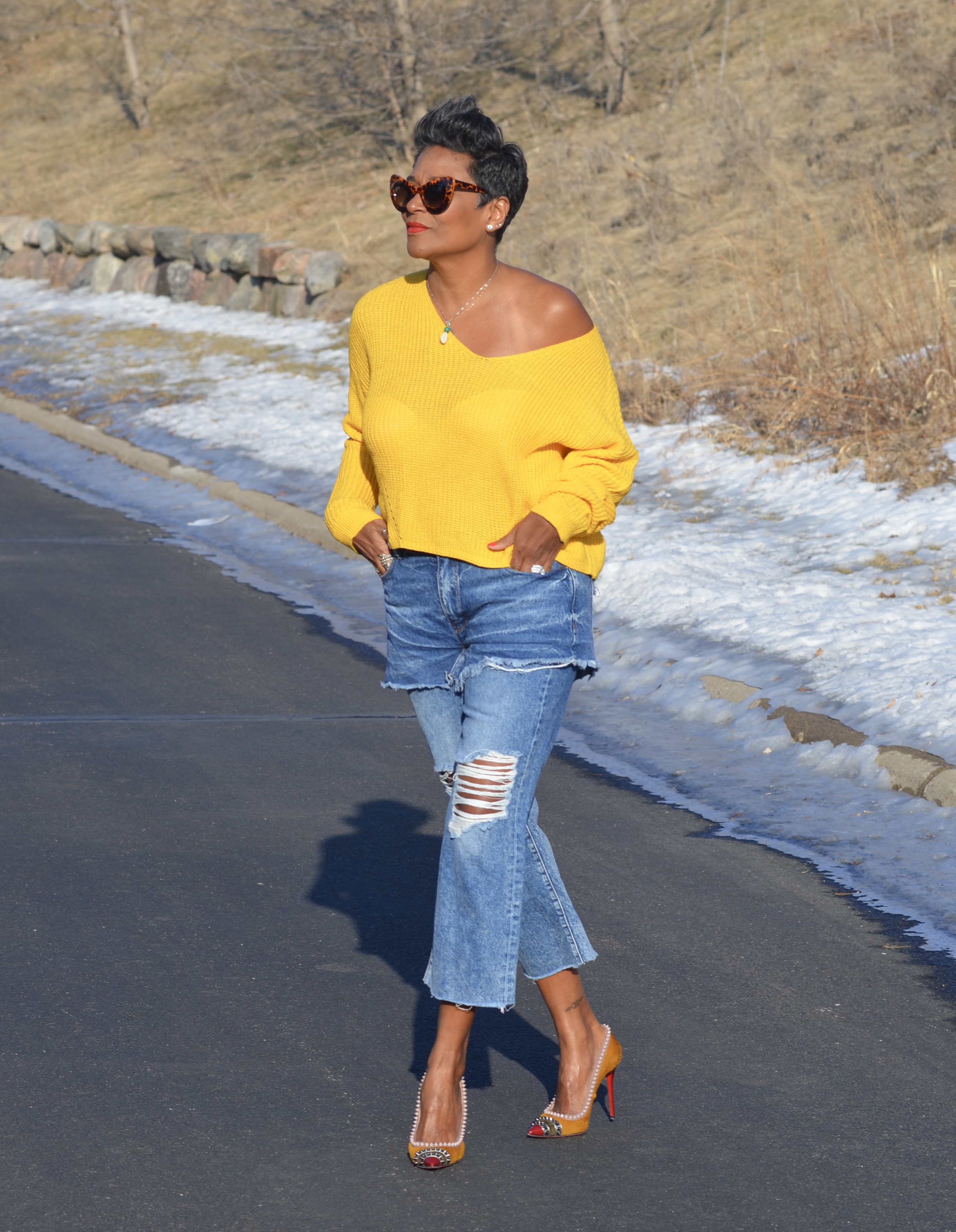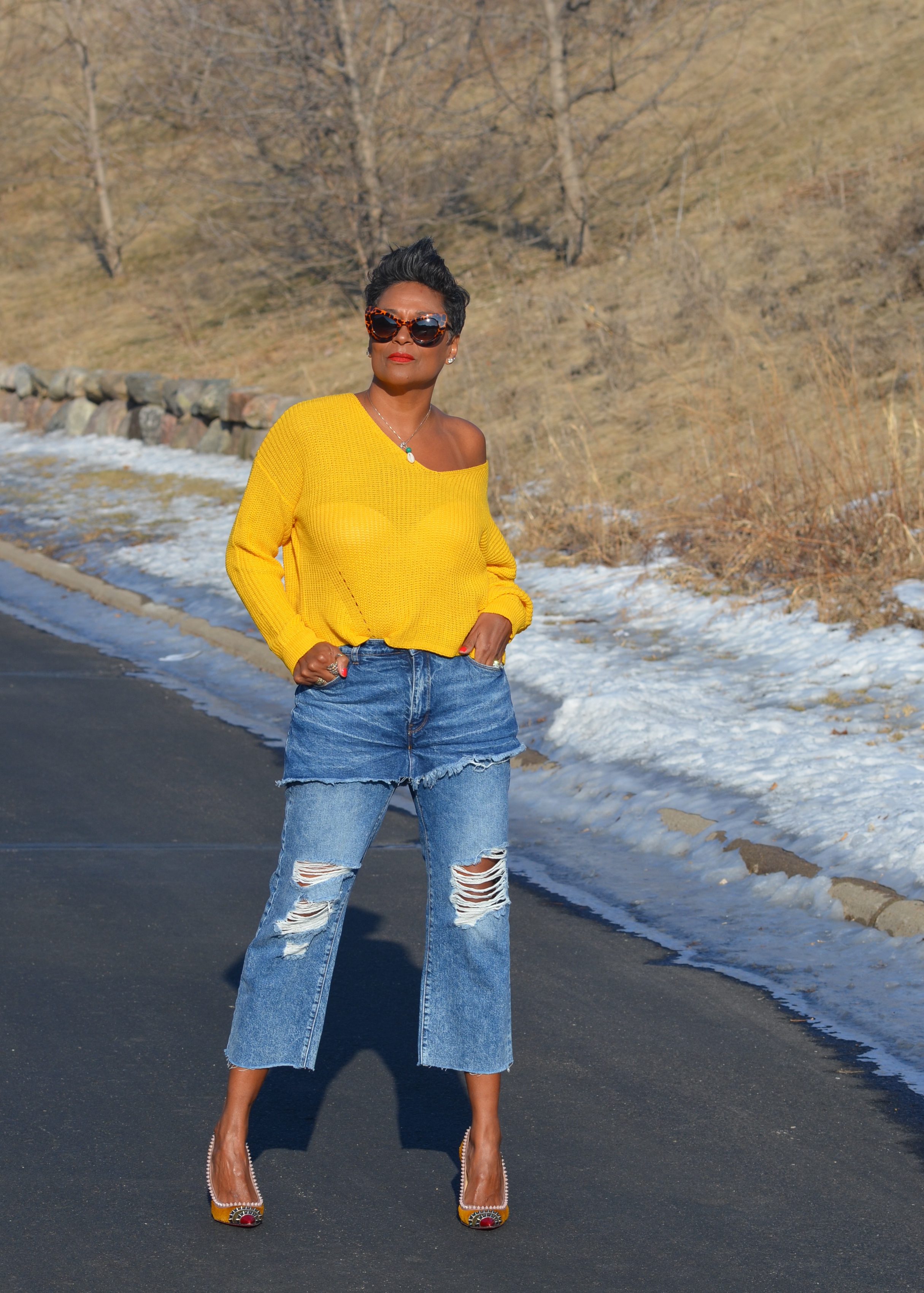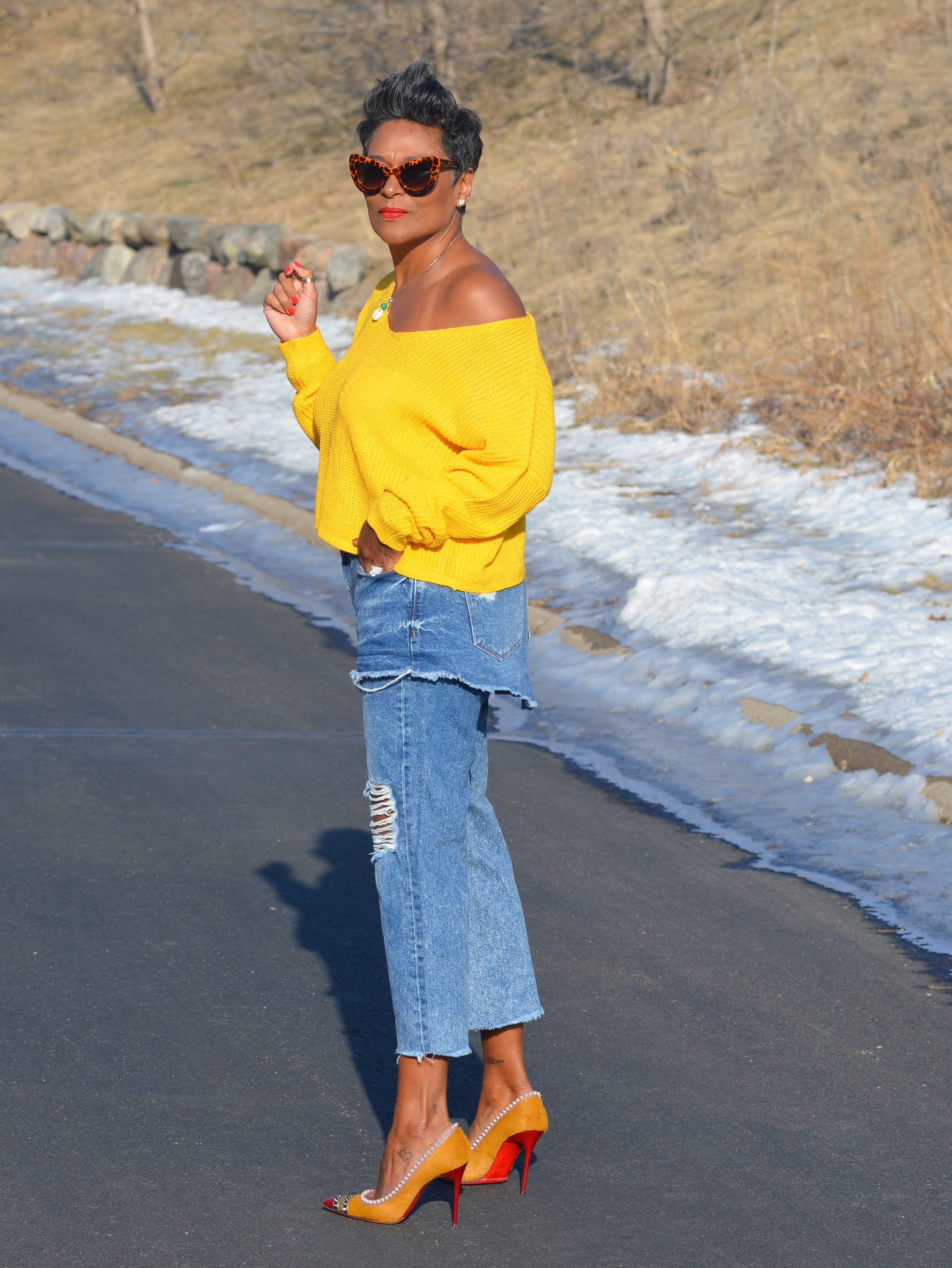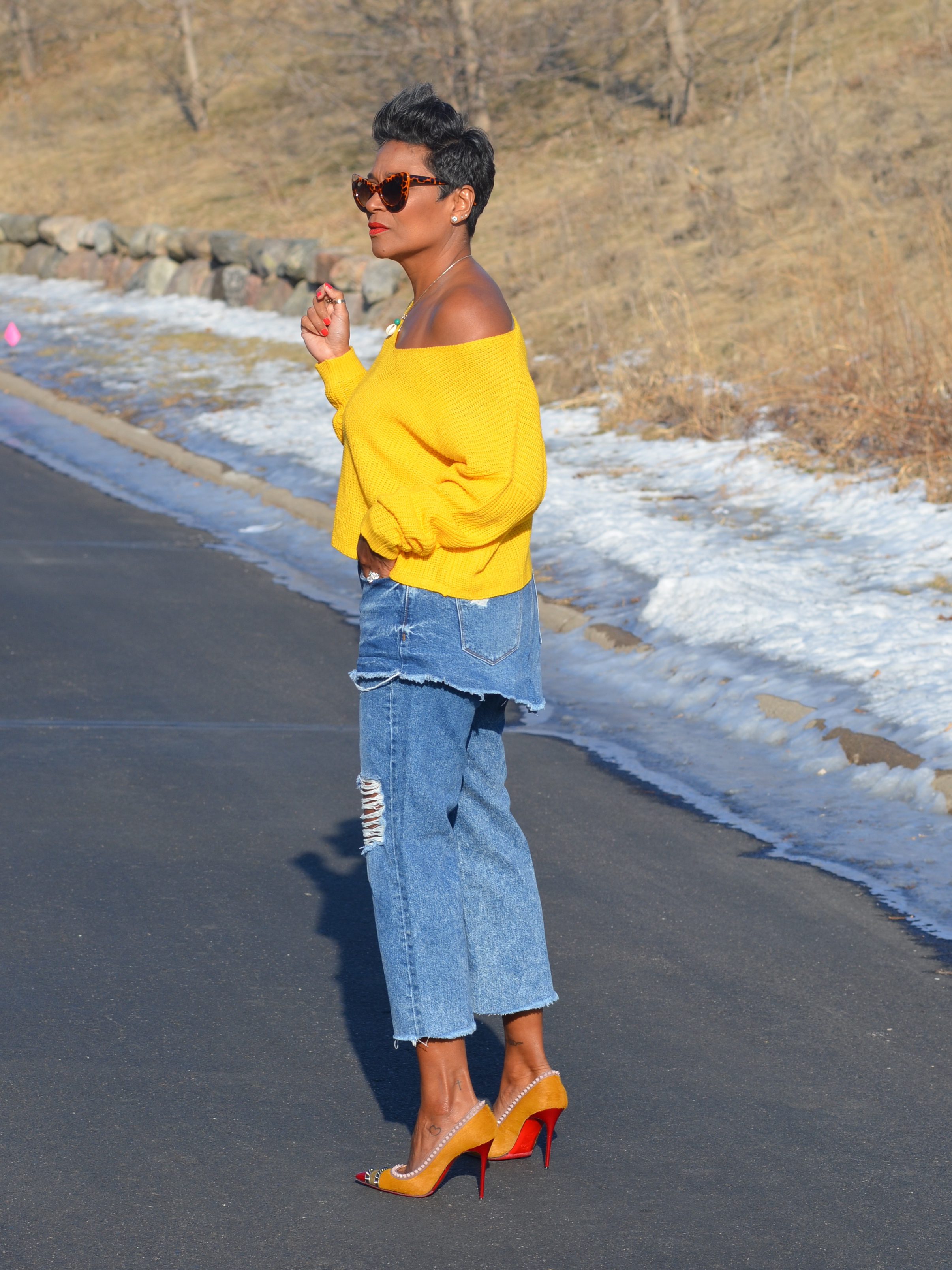This sweater may be one of my favorites. I did size up several sizes, to get a comfortable, off the shoulder look.