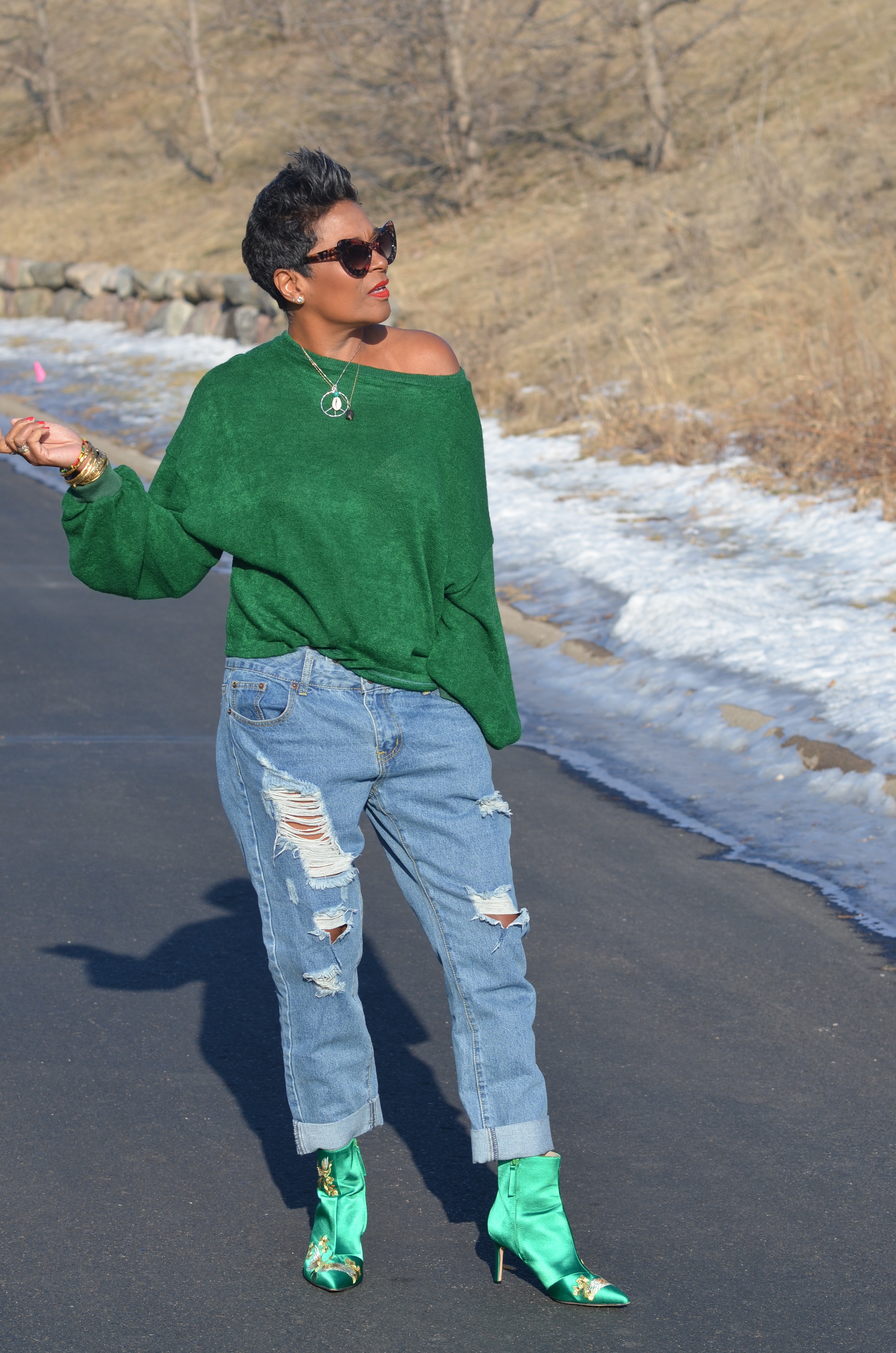 I purchased this top from Shein a few months ago and I’m kinda liking it. I think it may be the only green top in my closet and I’m wondering why. I love the color.