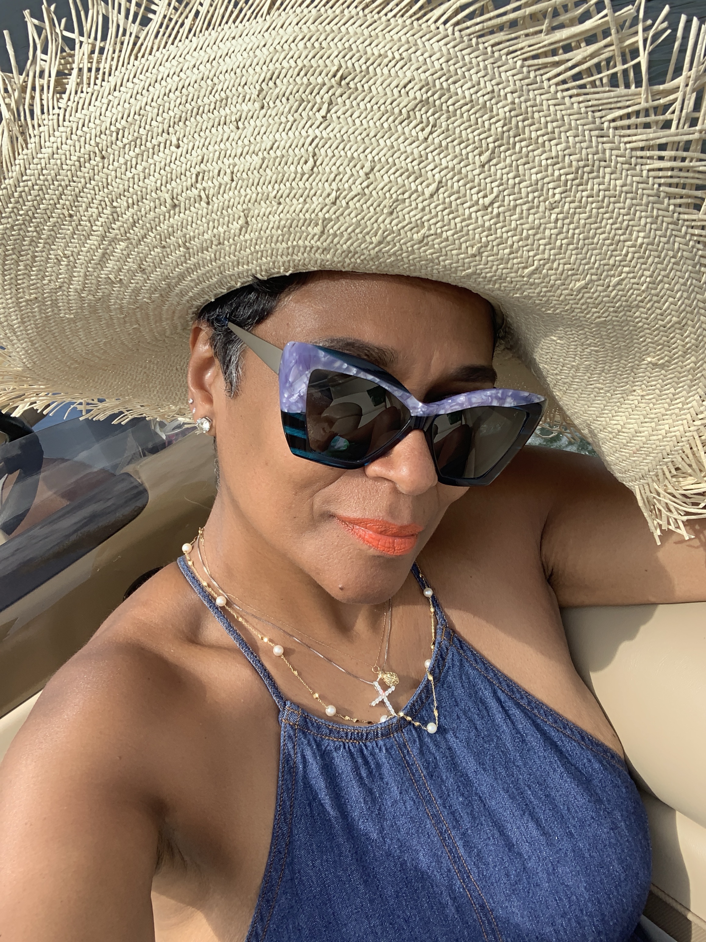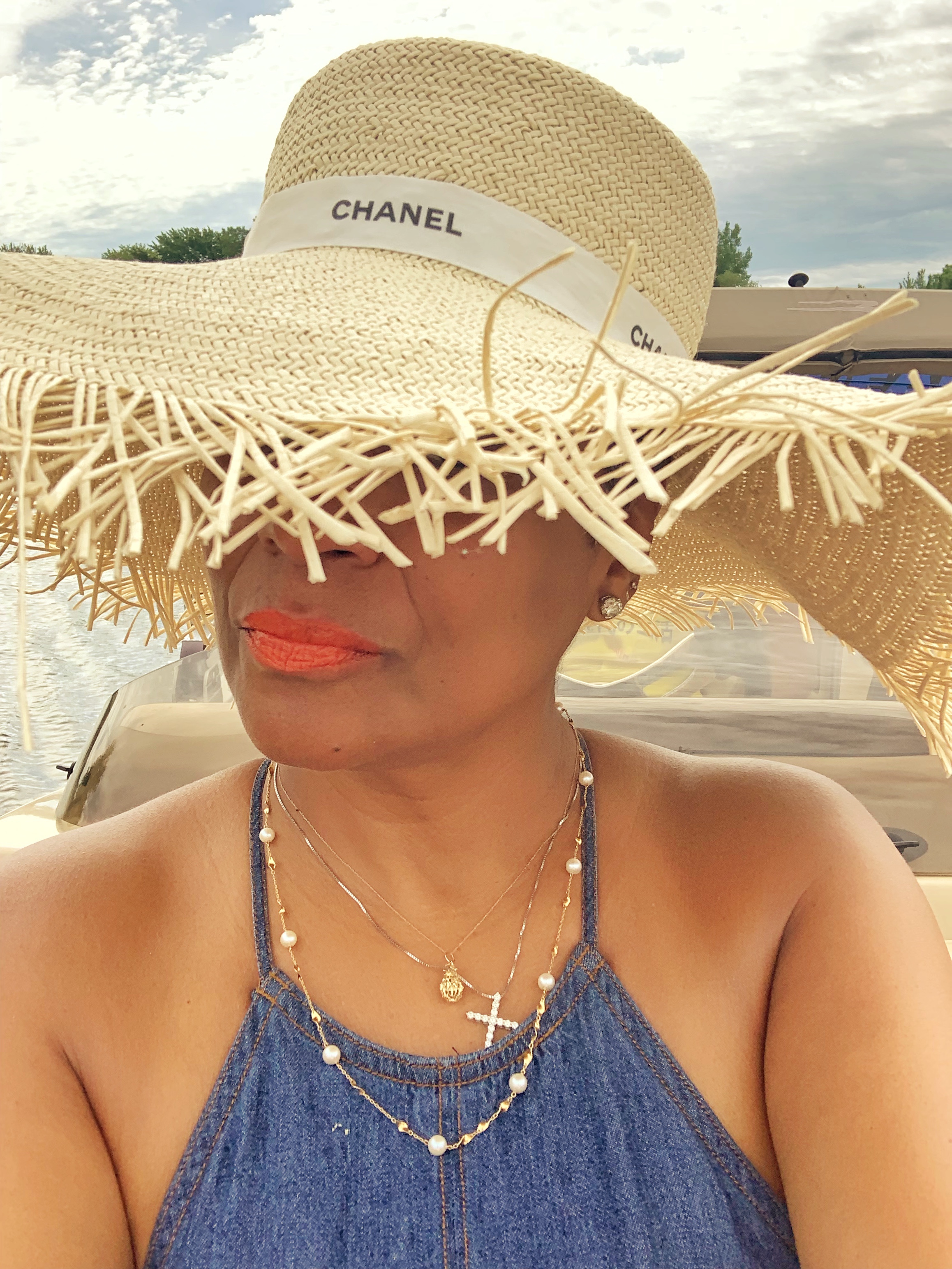 If you have the packaging ribbons, from your designer purses, you can adorn your summer hat, as seen here. 😜