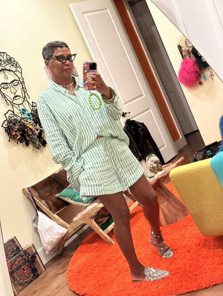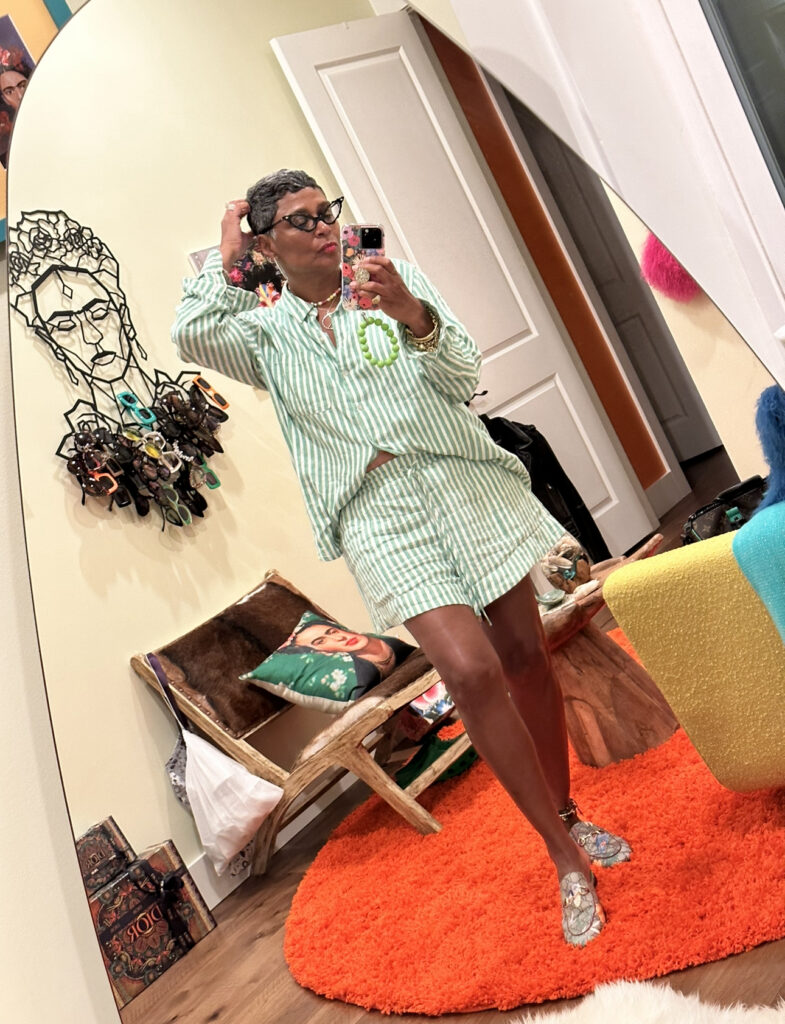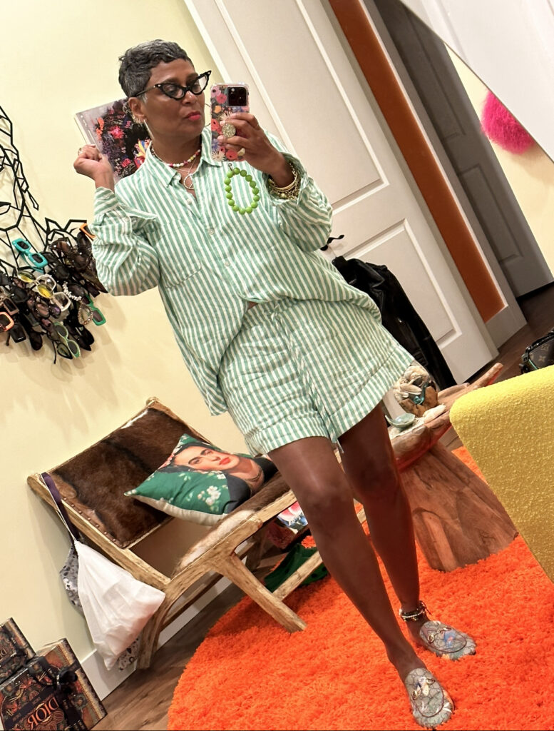 You can style this set with some cute, high heel sandals or sneakers. I chose to wear my slides.