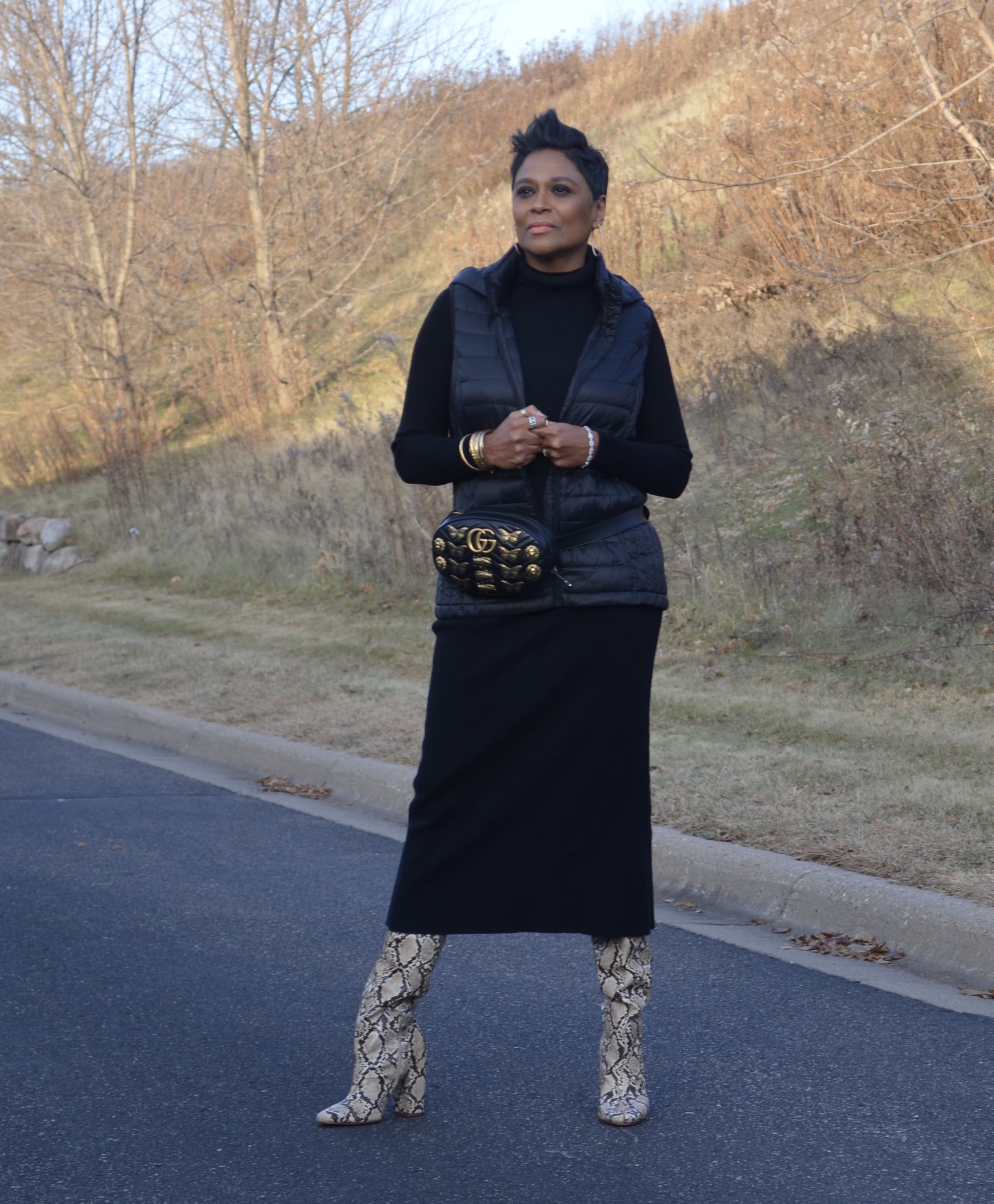 I purchased this vest a couple of months ago and couldn’t wait to style it with this dress. Luckily, I was able to wear it this past weekend before it got too cold to wear without a coat.